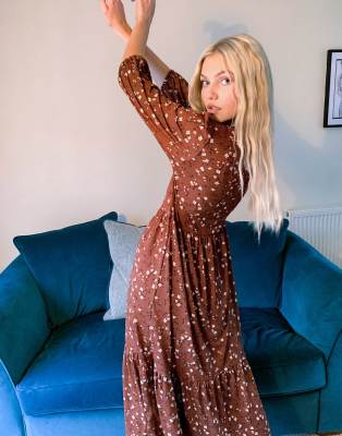 Stradivarius midi smock dress in brown