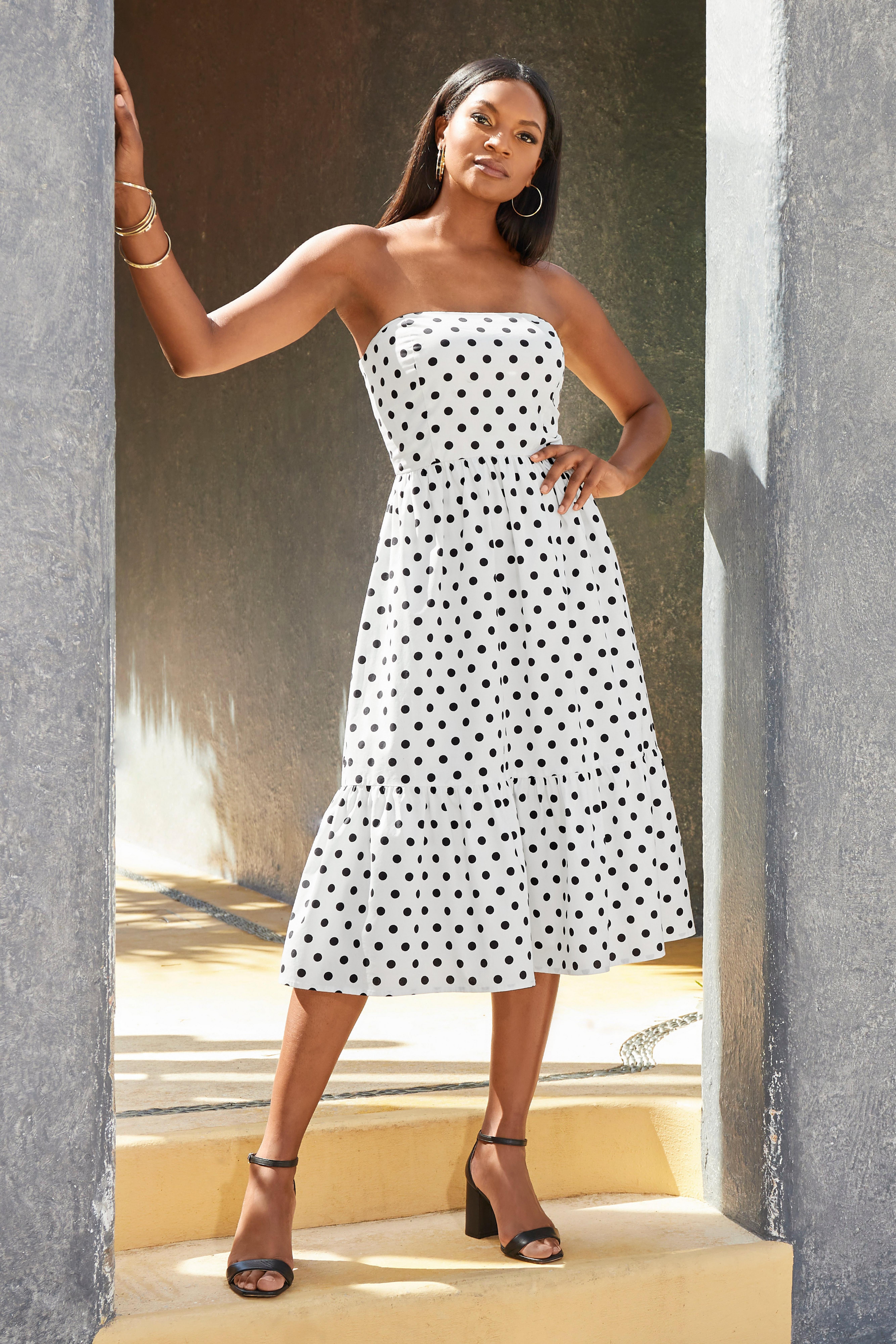 Miss Avenue Polka Dot Strapless Dress