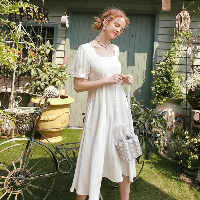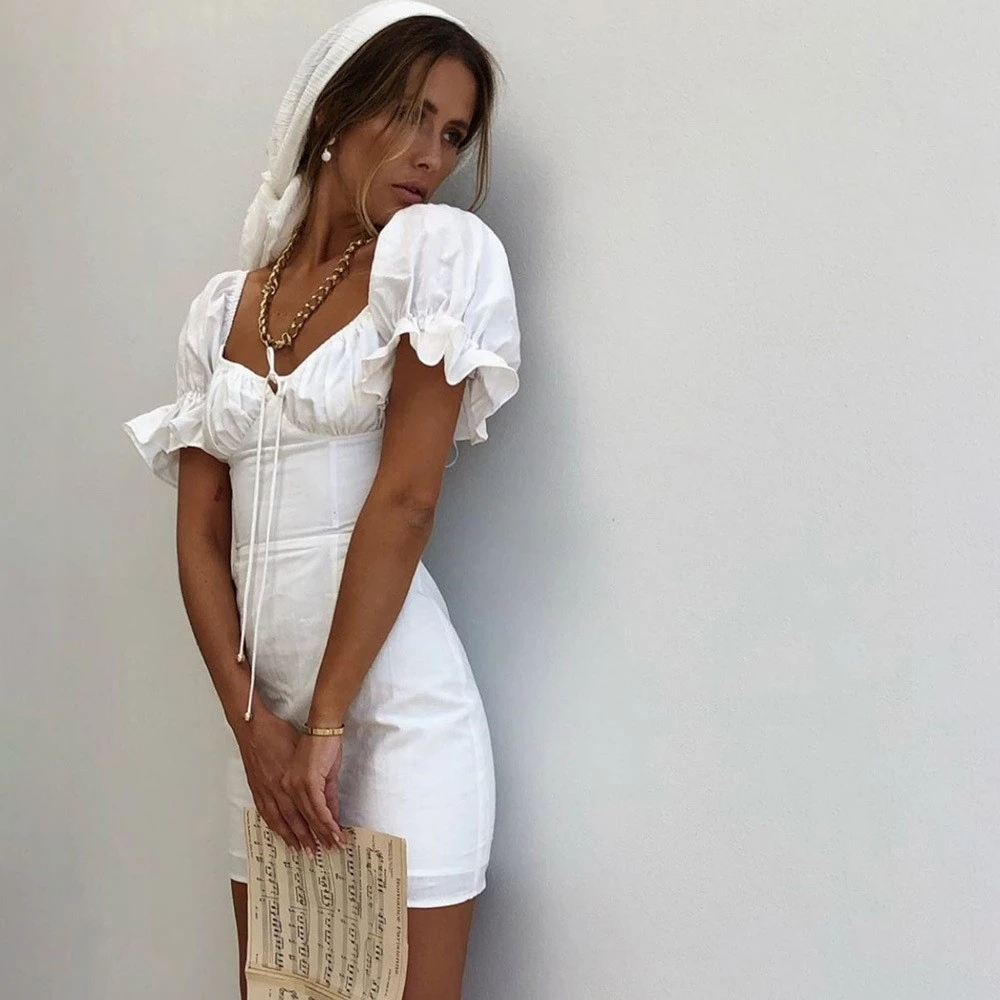 Summer Solid Milkmaid Vintage Dress
