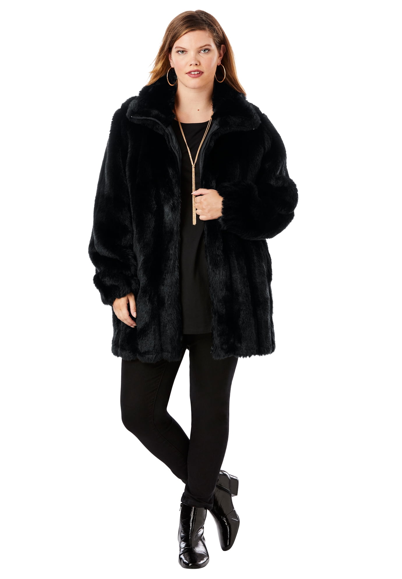 Short Faux-Fur Coat - 1X, Black