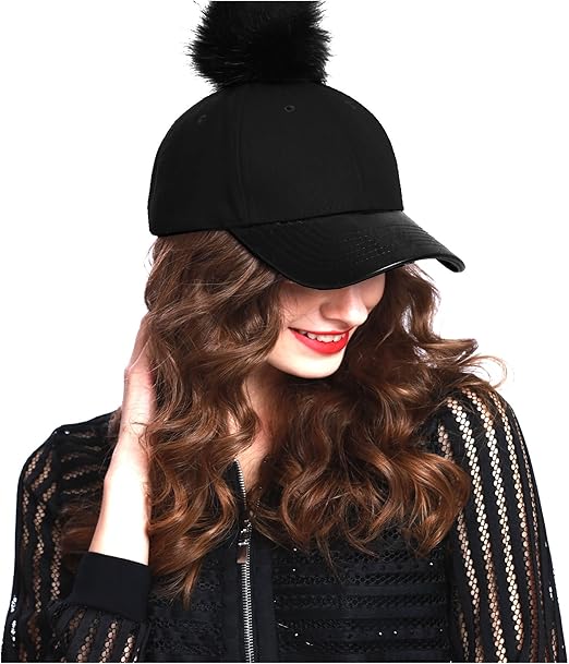 Women's Faux Fur Pom Pom Baseball Cap