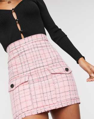 Pink Check Boucle Button Mini Skirt - Lyst