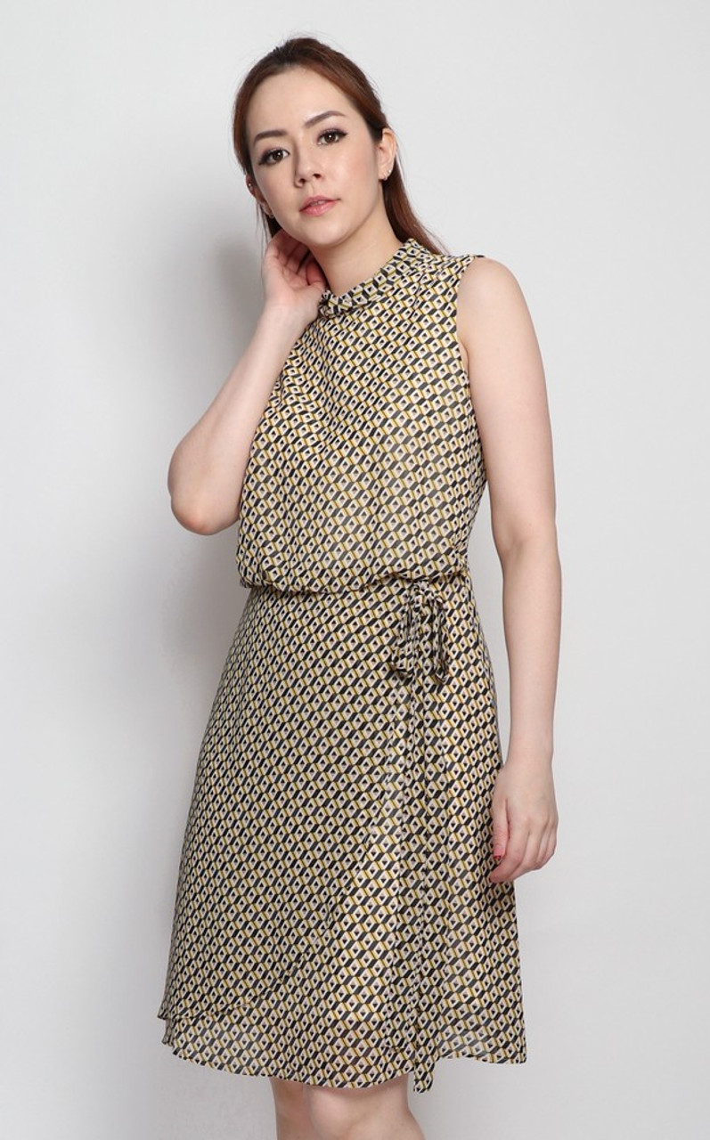 Printed Blouson Dress - Yellow | Online