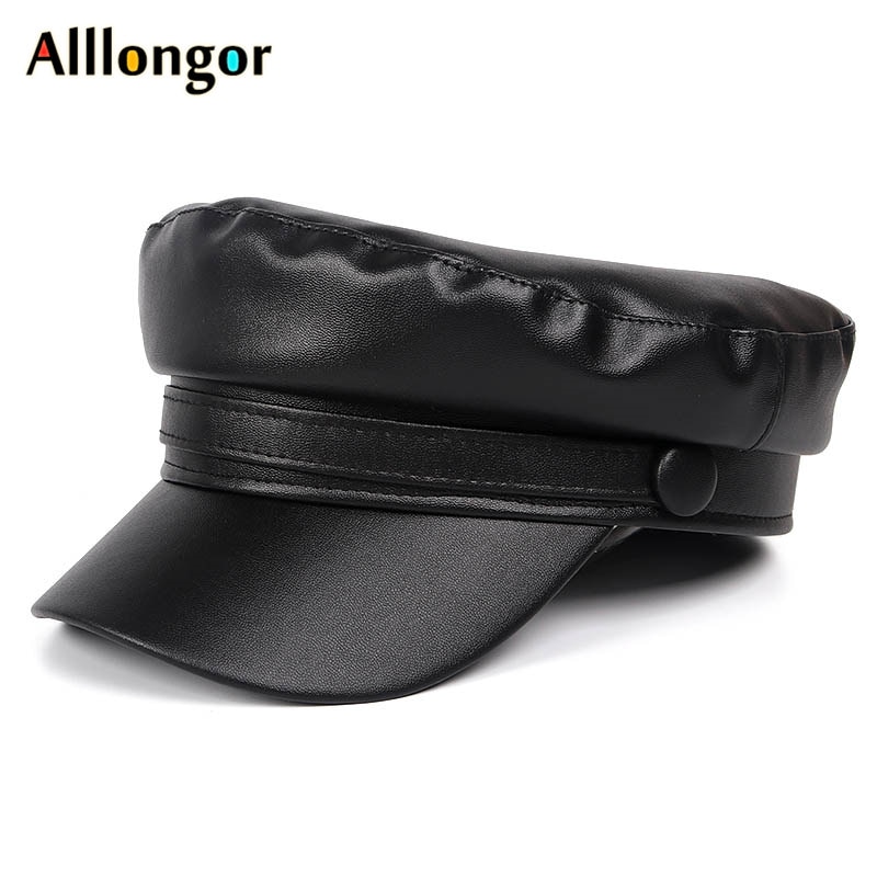 COKK Pu Leather Military Cap Women