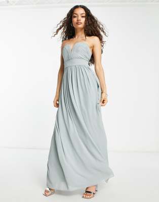 TFNC Petite – Bridesmaid – Langes, trägerloses Brautjungfernkleid in Salbeigrün | ASOS