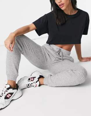 Topshop ribbed slim fit jogger in grey